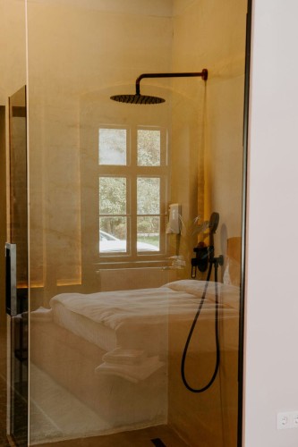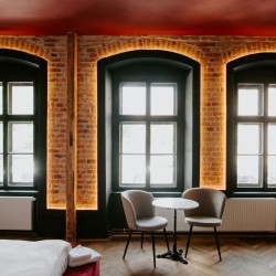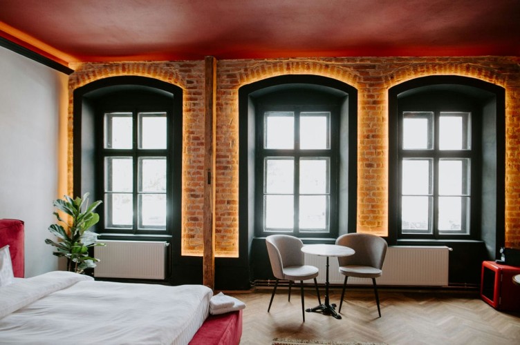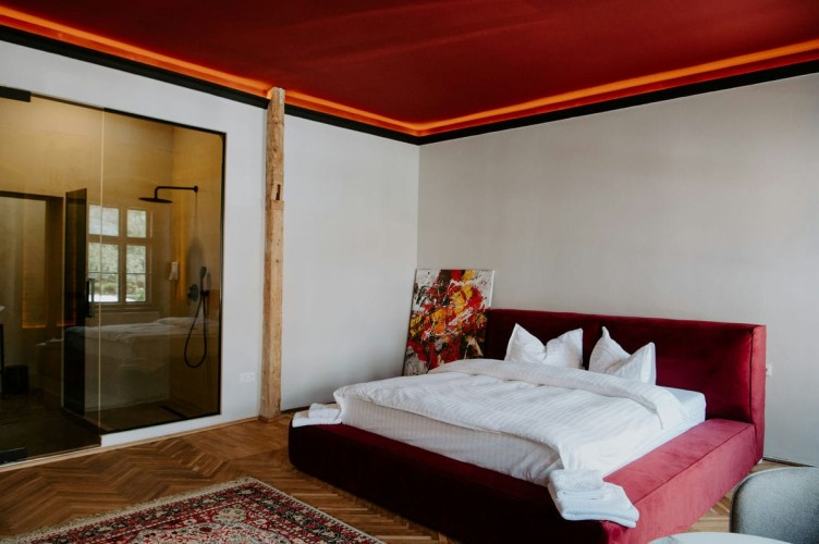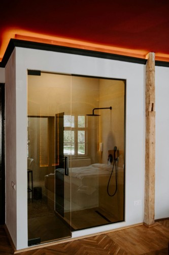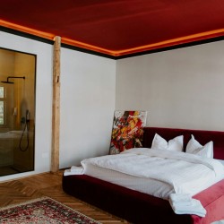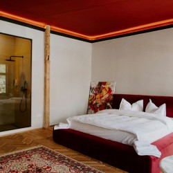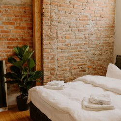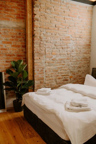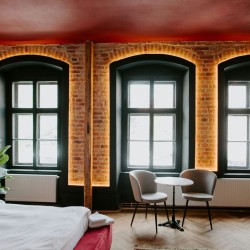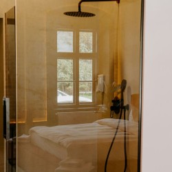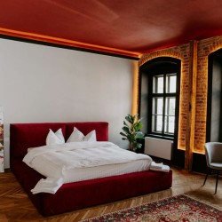 Cu un design deosebit, Cherry Studio beneficiaza de un walk-in shower cu vedere direct din pat si o priveliste deosebita spre centrul orasului. Compus dintr-un dormitor spatios si baie, separate de un perete de sticla, acest studio este printre preferatele oaspetilor.
