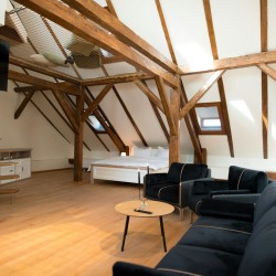 O mansarda cu un vibe special! Luminos, mare, elegant si comfortabil, acest apartament cu structura de studio este compus dintr-un dormitor cu zona de living open space si o baie.